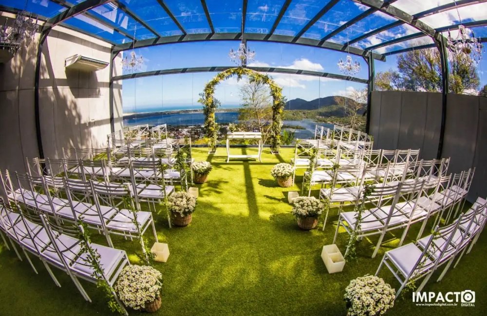 Os noivos convidam para recepção no dia 24 de janeiro de 2026, no salão Indaiá Eventos - Mirante do Morro da Lagoa - Rod. Admar Gonzaga, 4720 B - Lagoa da Conceição - Florianópolis- SC - 88062-001. Será logo após a cerimônia. Não vai perder, né?